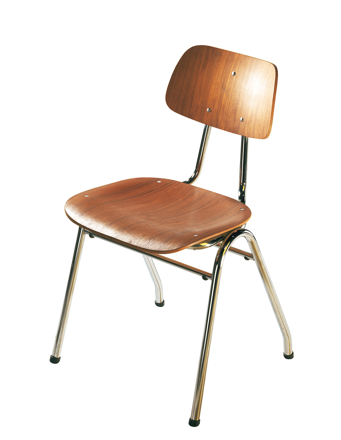 In 1954 Karl Nothhelfer designed the slender and functional, stackable four-legged KN-38 for VS as flexible seating for school halls and other multi-purpose areas.