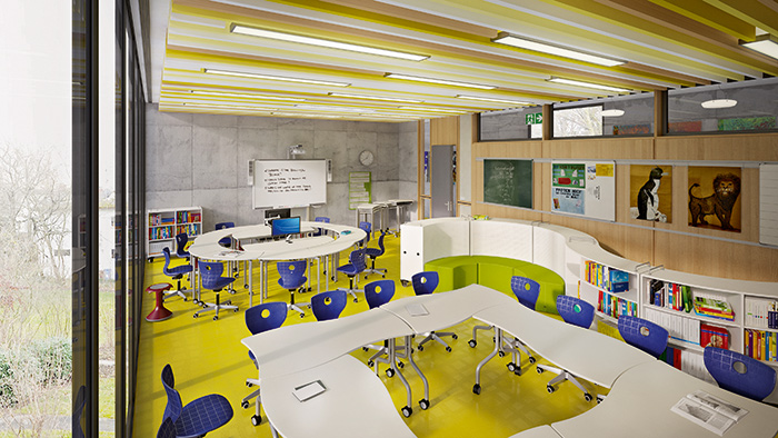 Planning of the school in Chicago by the architects’ office, Perkins+Will with Peter Brown. VS’s Panton series skid tables and chairs were used.