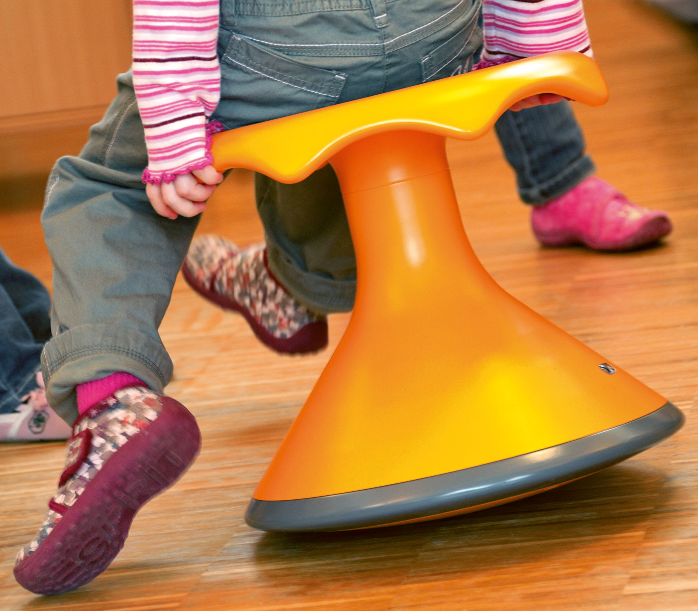 John Harding studied at the Arts Institute of Bournemouth and product design at Manchester Metropolitan University. Since 2001 he has been working as a free-lance designer and consultant. For John Harding, it is important that design is always combined with concrete, practical ideas to improve life for older, frailer people and make their everyday life easier. At present he is working with Kings College London on a walking aid for climbing steps for rehab patients. The design is being driven forward step by step with the help of a group of users. This is the kind of process that was employed in the design of the successful, dynamic Hokki stool; it continued until the shape was finalized and its physiological, emotional and cognitive strengths had been fully developed. The enthusiasm with which it was received was validation for all the intensive work: Putting it in simple terms, active sitting is fun for kids!