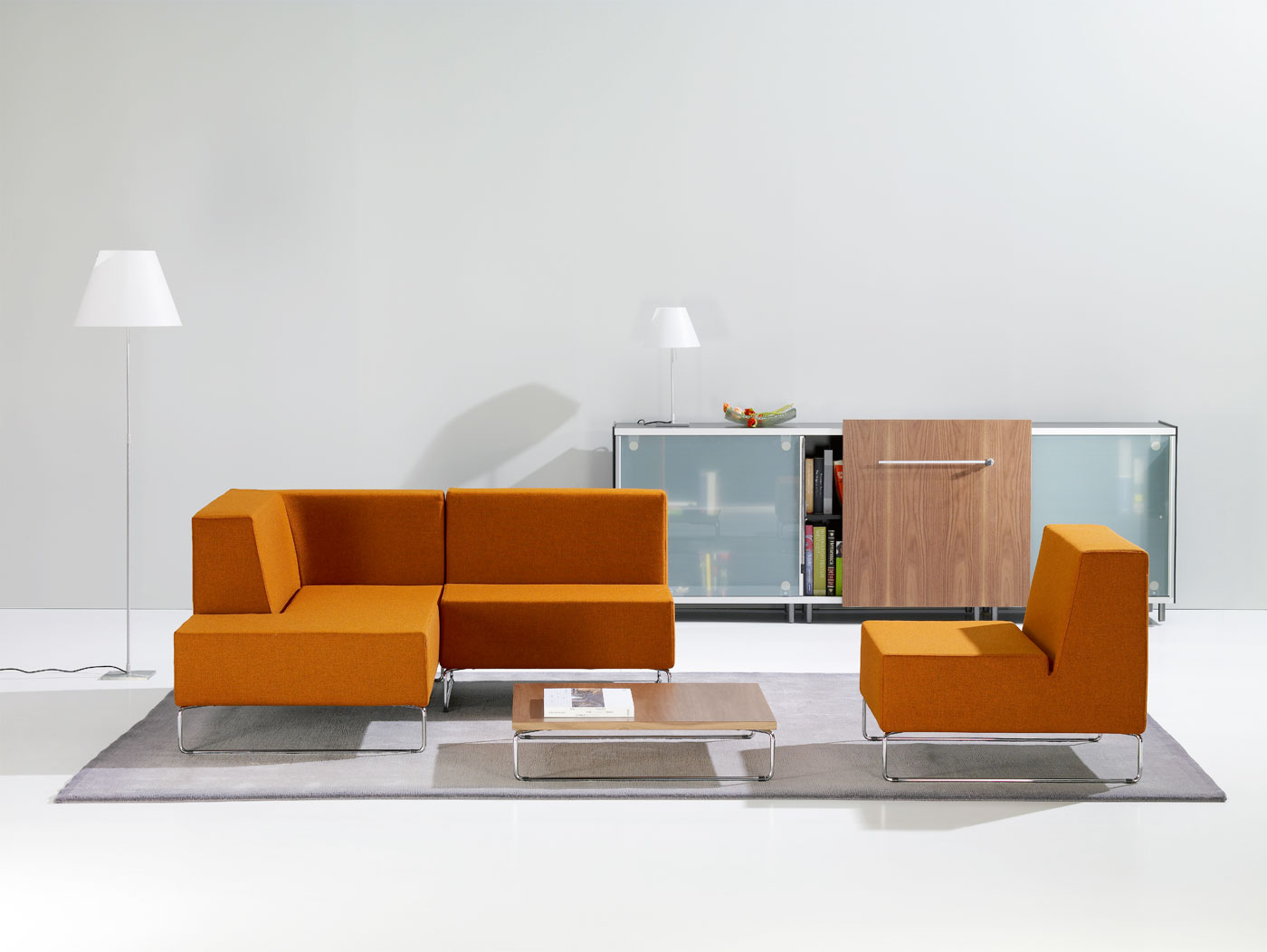 An upholstered furniture series that is easily combinable for communication and leisure areas for offices and schools.