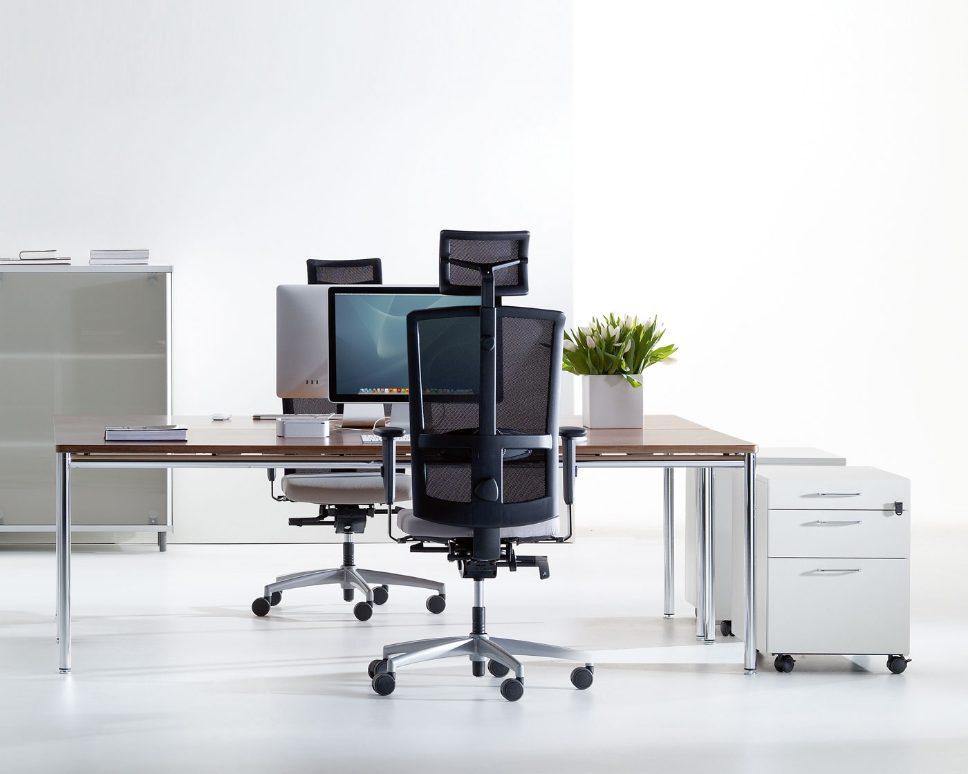 Stefan Behnisch continued as VS’s design partner to develop the Series 900 – expanded to form the Series 901, an integrated and high performance office furniture system that fits harmoniously and elegantly into very different kinds of space situations and office environments.