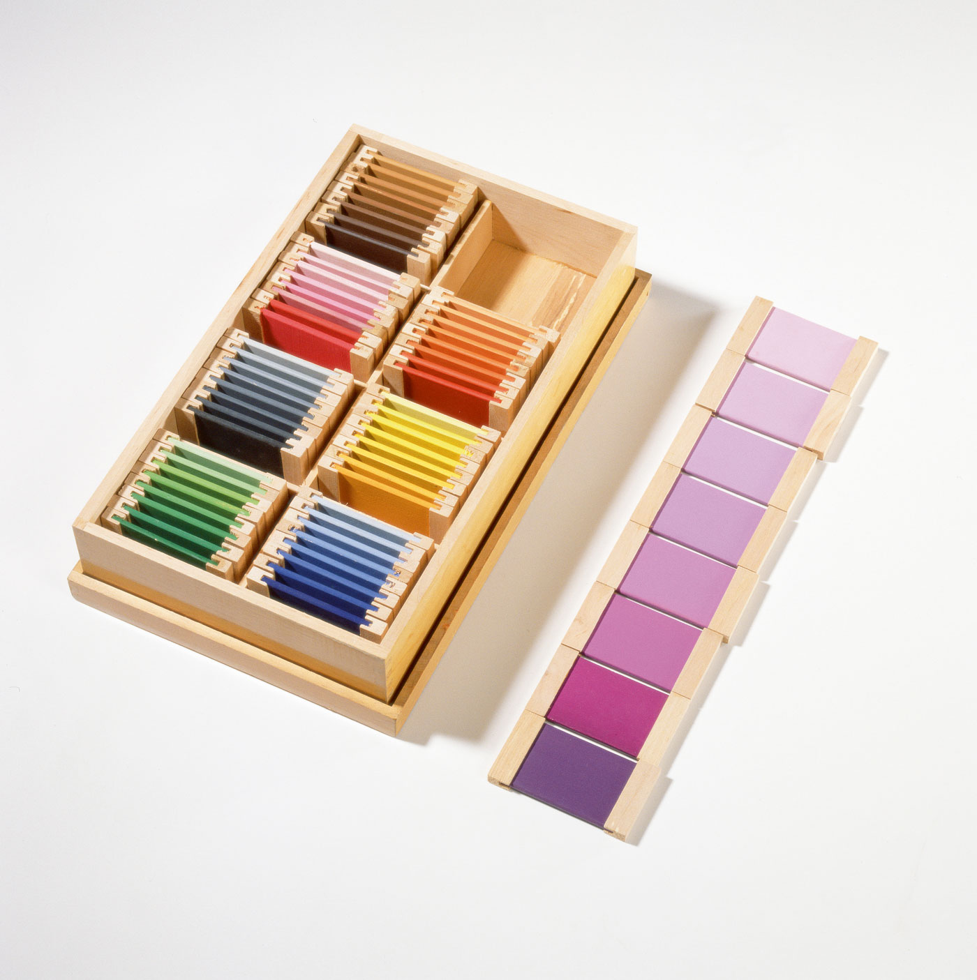 The specific learning materials could only be produced under the Maria Montessori license. Even the wooden and cardboard containers are meticulously made.