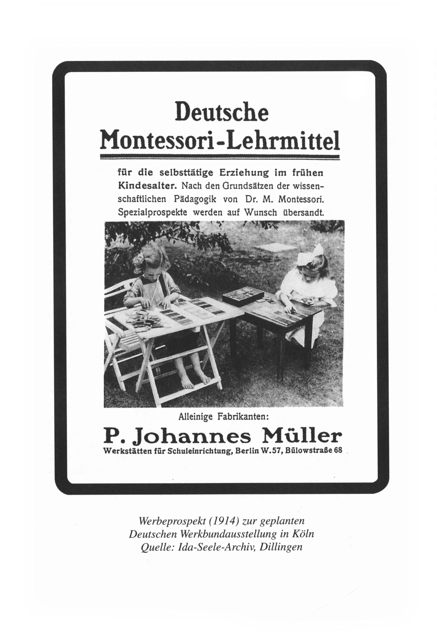 Advertising poster from around 1926 for P. Johannes Müller, the “sole manufacturer” of Montessori materials in Germany.