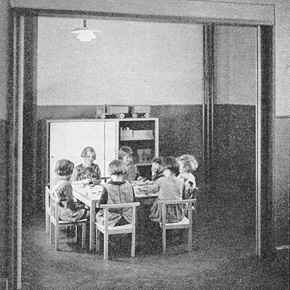 A Children’s House has clear, structured rooms or areas for different activities. The large activities room allows room for exercise. Children’s House in Altona, 1928.