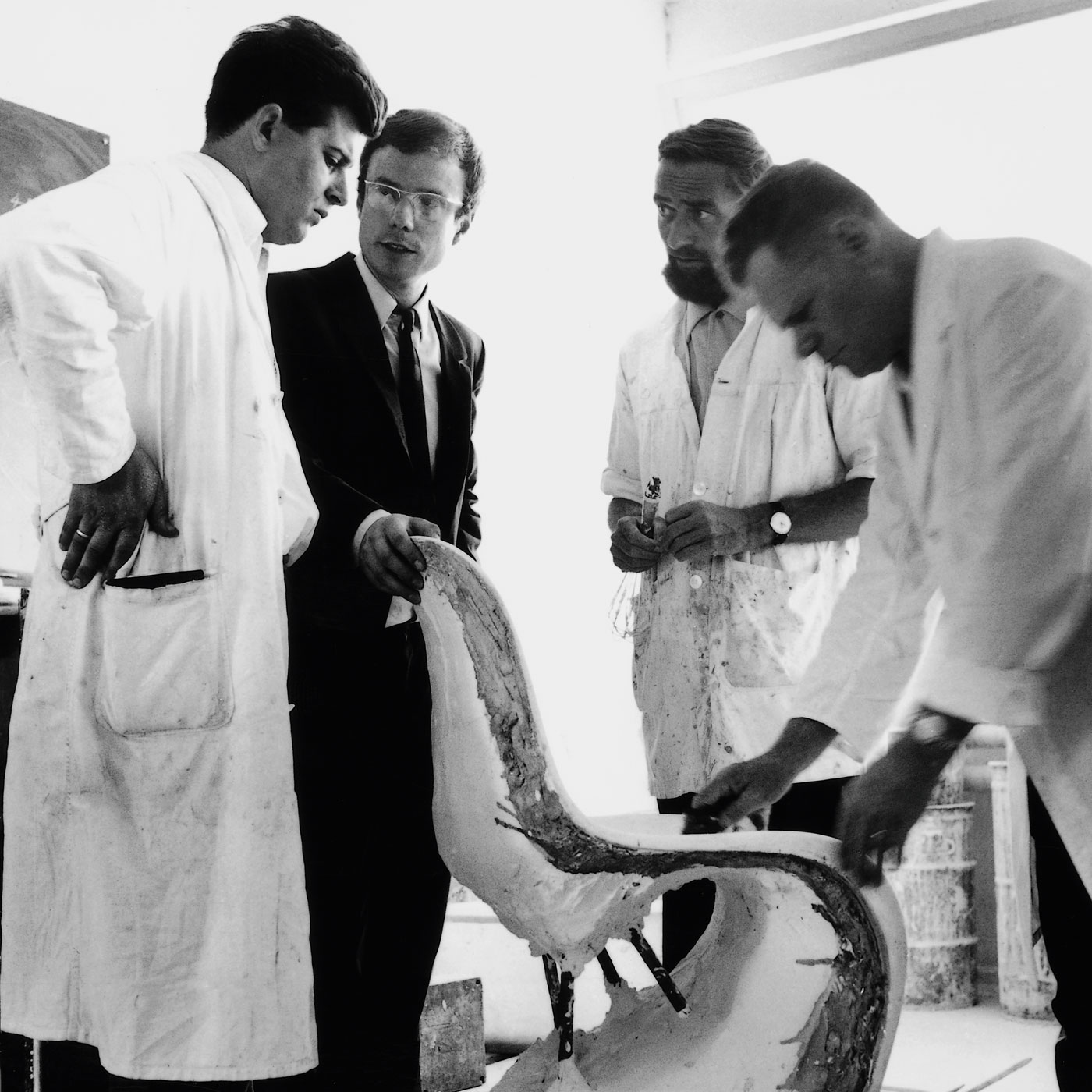 Panton started his own studio; his first chairs were manufactured by Fritz Hansen, a well-known Danish furniture maker.