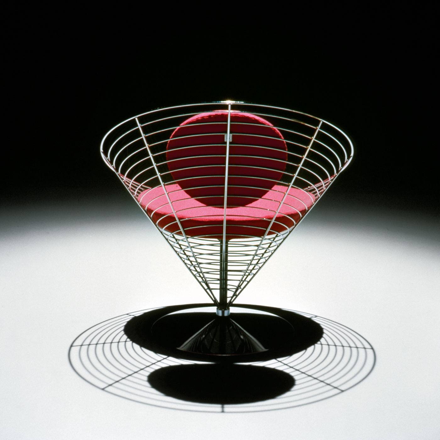 With his Wire Cone chair Verner Panton was experimenting with a cone shape and unusual use of wire.