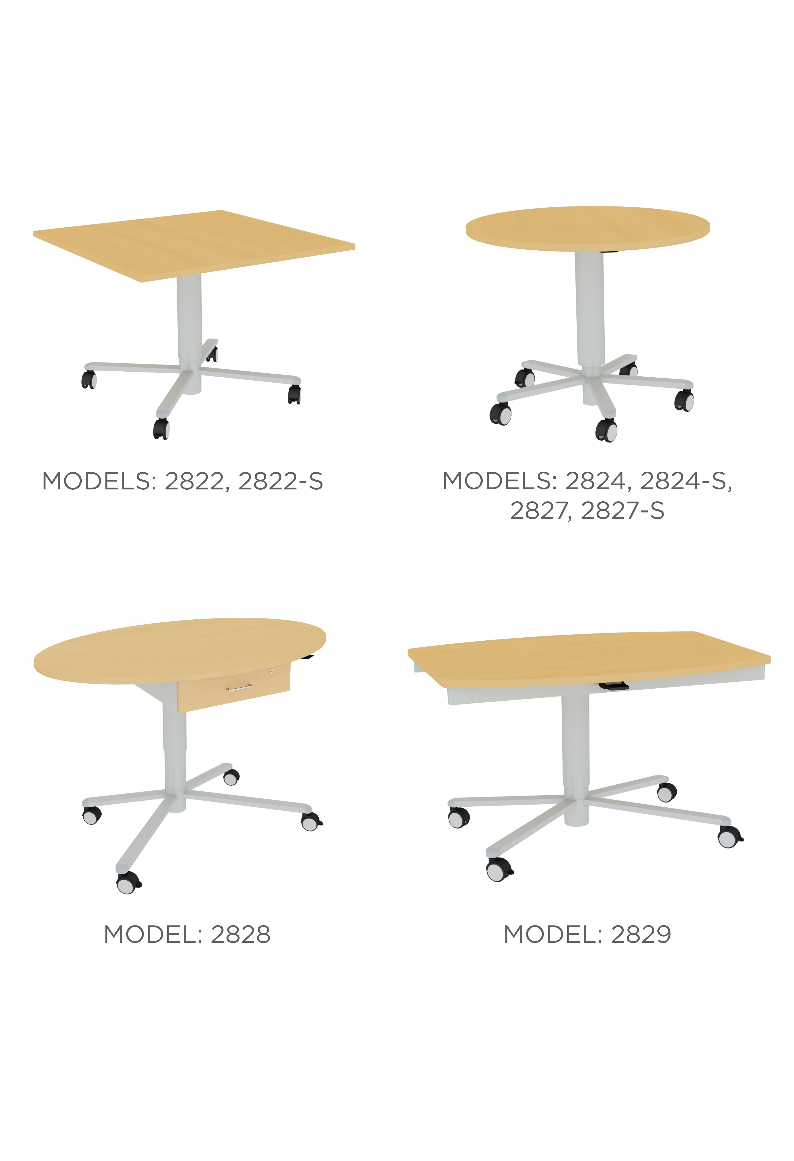 The RondoLift table raises the bar for teachers and students. The fully-adjustable tabletop gives it sit-at or stand-at functionality. Lockable castors make it mobile. And the optional tilt mechanism allows it to be stowed in a snap or converted to a projection or display surface. Quick, creative options that help take education up a notch.