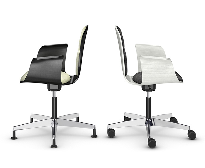 The Stratos is available in three versions: Stratos W is a four-legged visitor’s chair with a steel-wire frame; Stratos S4 is a conference swivel chair with a four-star aluminum base and Stratos S5 an office swivel chair with a five-star aluminum base. The design language is clear and geometrical making it versatile for use in an office or school.